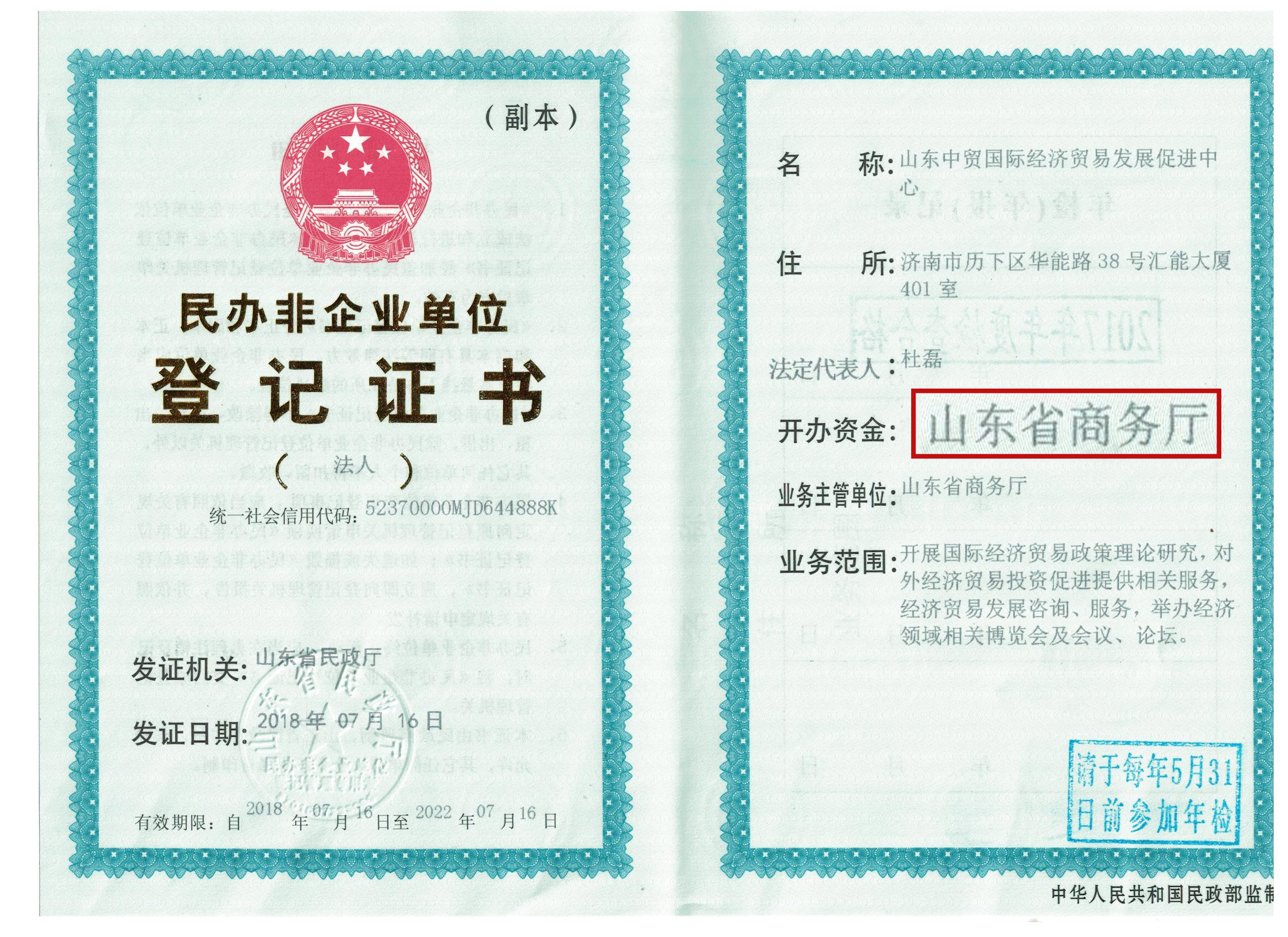 為順應市場經濟發展和業務拓展需要,山東中貿國際經濟貿易推廣服務中心于2018年6月6日召開了理事會(董事)會議,經全體理事一致通過將原“山東中貿國際經濟貿易推廣服務中心”名稱變更為“山東中貿國際經濟貿易發展促進中心”。并上報業務主管單位山東省商務廳批準,經山東省民政廳7月16日核準并下發了新的營業執照。今后所有業務將啟用“山東中貿國際經濟貿易發展促進中心”新的名稱。相信“山東中貿國際經濟貿易發展促進中心”一定會為社會經濟建設發展起到積極的促進作用。