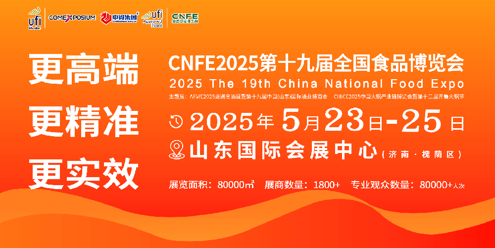 CNFE2025第十九屆全國食品博覽會檔期確定!CNFE2025第十九屆全國食品博覽會,將于2025年5月23-25日在濟南市山東國際會展中心(濟南市槐蔭區)舉···